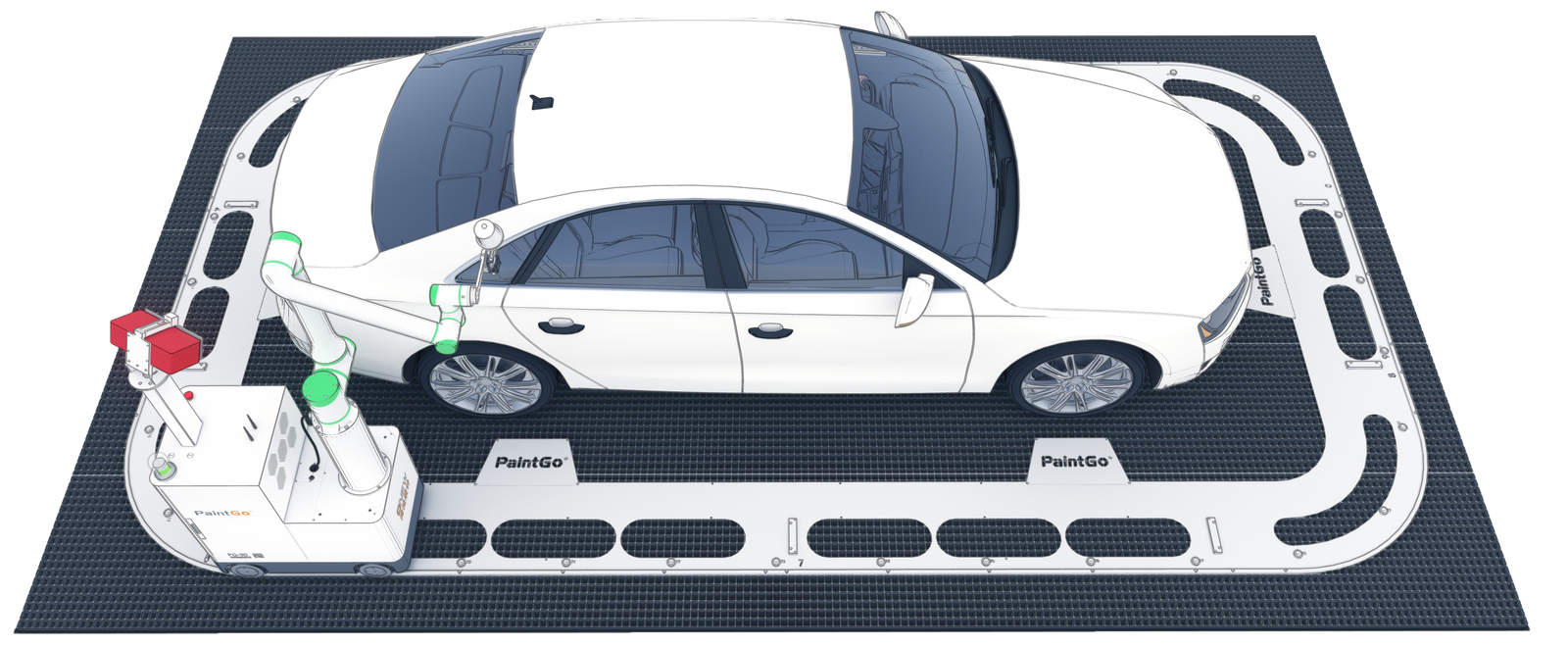 Grâce à sa précision et sa constance, le robot garantit une application homogène de la peinture, reproduisant la qualité de première monte des véhicules.